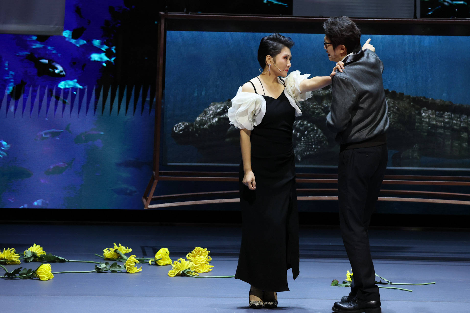 《鳄鱼》历经全国25座城市、50余场的巡演,取得了票房与口碑双丰收的好成绩。尤其是凯丽饰演的“巧玲”,以其隐忍、爆发与窒息感征服全国观众,掌声笑声欢呼声不绝于耳,连作者莫言都不吝溢美之词,称赞她:“好的演员不仅能演让人心痛的角色,也可以演让人特别炸裂奋起的角色!” 然而这一次,凯丽彻底颠覆自我。她不再是婚姻牢笼中的“巧玲”,而是化身成为那个夺走丈夫、摧毁家庭、带来无尽不幸的——“瘦马”。极致的反差一经官宣就让人充满期待,超强的实力派演技在昨晚的首演中频频燃炸现场。凯丽完美塑造出了一个复杂深刻的“情妇”形象,她看似“得宠”但却永远得不到自己最想要的名分,看似牙尖嘴利咄咄逼人但却有着痛失三个孩子的心酸,看似享受着荣华富贵的生活但内心早已认清一切,她对单无惮由爱生恨,失望透顶,最终与秘书一起离开……